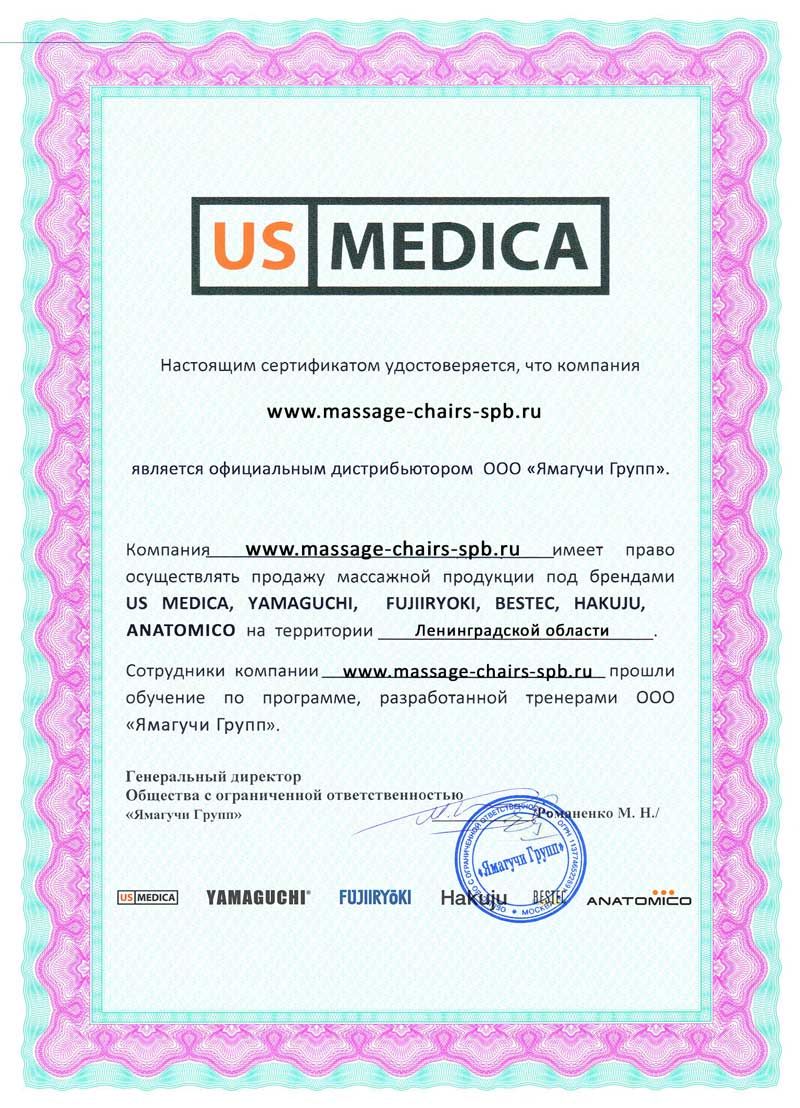 - Гарантия распространяется на продукцию компаний US MEDICA, YAMAGUCHI, HAKUJU, BESTEC, ANATOMICO и FUJIIRYOKI, предназначенную для продажи на территории России и стран СНГ и первоначально проданную конечному пользователю через официальные каналы дистрибуции.